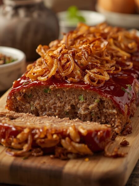0 Add to FavoritesBBQ Glazed Meatloaf with Crispy Onions