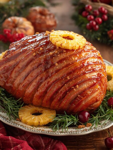 Honey Glazed Christmas Ham with Pineapple and Brown Sugar