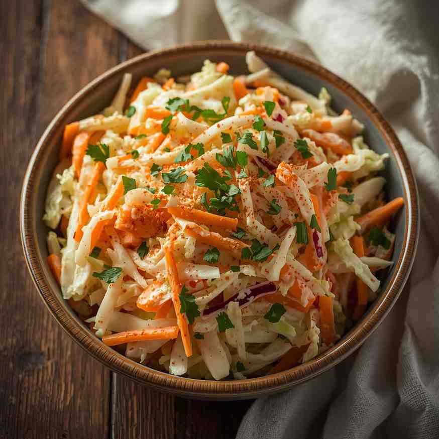 Classic Coleslaw is a timeless, creamy, and tangy salad made from finely shredded cabbage, carrots, and a luscious dressing that strikes the perfect balance of sweetness and acidity.