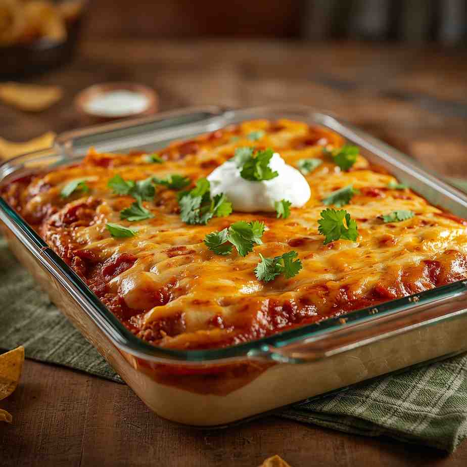 It’s a dish that feels like home — rich, comforting, and full of warmth. Every bite delivers a burst of flavor from the enchilada sauce and spices, while the melted cheese ties everything together perfectly. It’s also extremely customizable, so whether you prefer chicken, beef, beans, or even vegetables, you can make it your own.