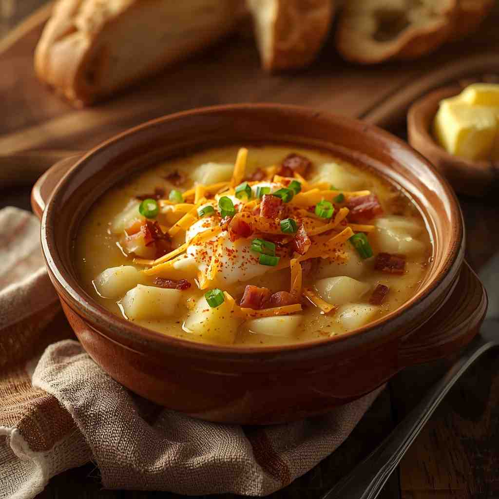 This dish is ideal for cold winter evenings, casual family dinners, or when you just need a bit of comfort food to lift your spirits. With its velvety base, hearty potato chunks, and flavorful toppings, it’s both indulgent and satisfying.