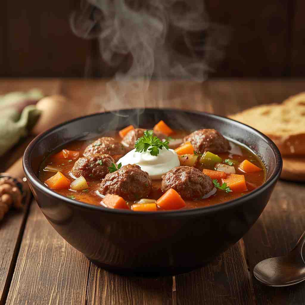 Meatball Soup is more than just a meal—it’s comfort, warmth, and nourishment in one delicious bowl. With its tender meatballs, aromatic broth, and mix of vegetables, this dish is perfect for cozy dinners, family gatherings, meal prep, or whenever you crave a wholesome, satisfying dish. It’s an easy, versatile, customizable recipe that always delivers rich flavor and heartwarming satisfaction.