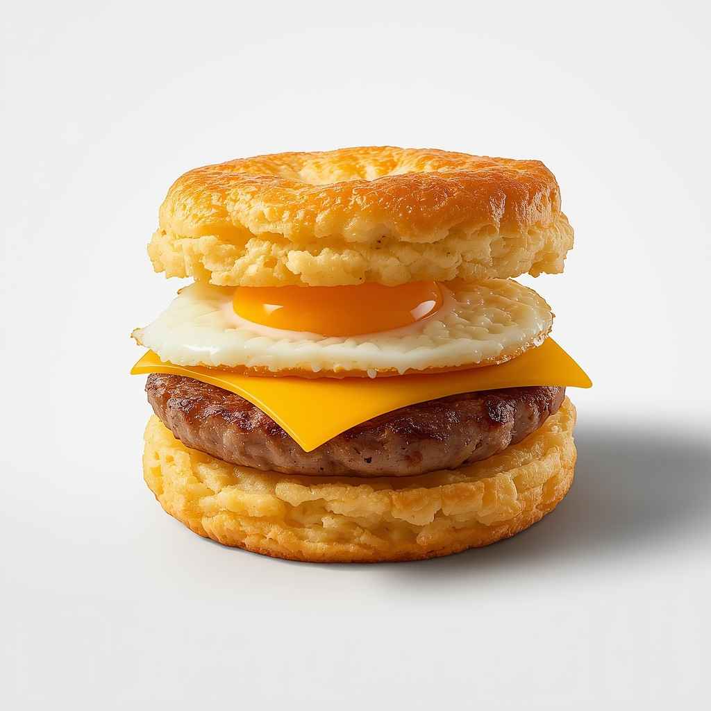The Sausage, Egg & Cheese Biscuit is the ultimate comfort breakfast—warm, flaky, and irresistibly satisfying. With layers of buttery biscuit, savory sausage, fluffy egg, and melted cheese, it delivers everything you crave in a hearty morning meal.